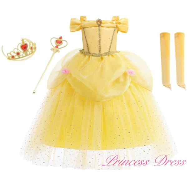 Tyhtym プリンセス ドレス 子供用 ベル ドレス キッズ 美女と野獣風ドレス ティアラなど 6点セット イエローワンピース ディズニー コスプレ キッズコスチューム イベント ステージ衣装 変装 仮装 発表会 学園祭 文化祭 クリスマス ハロウ Lindnercapital Com
